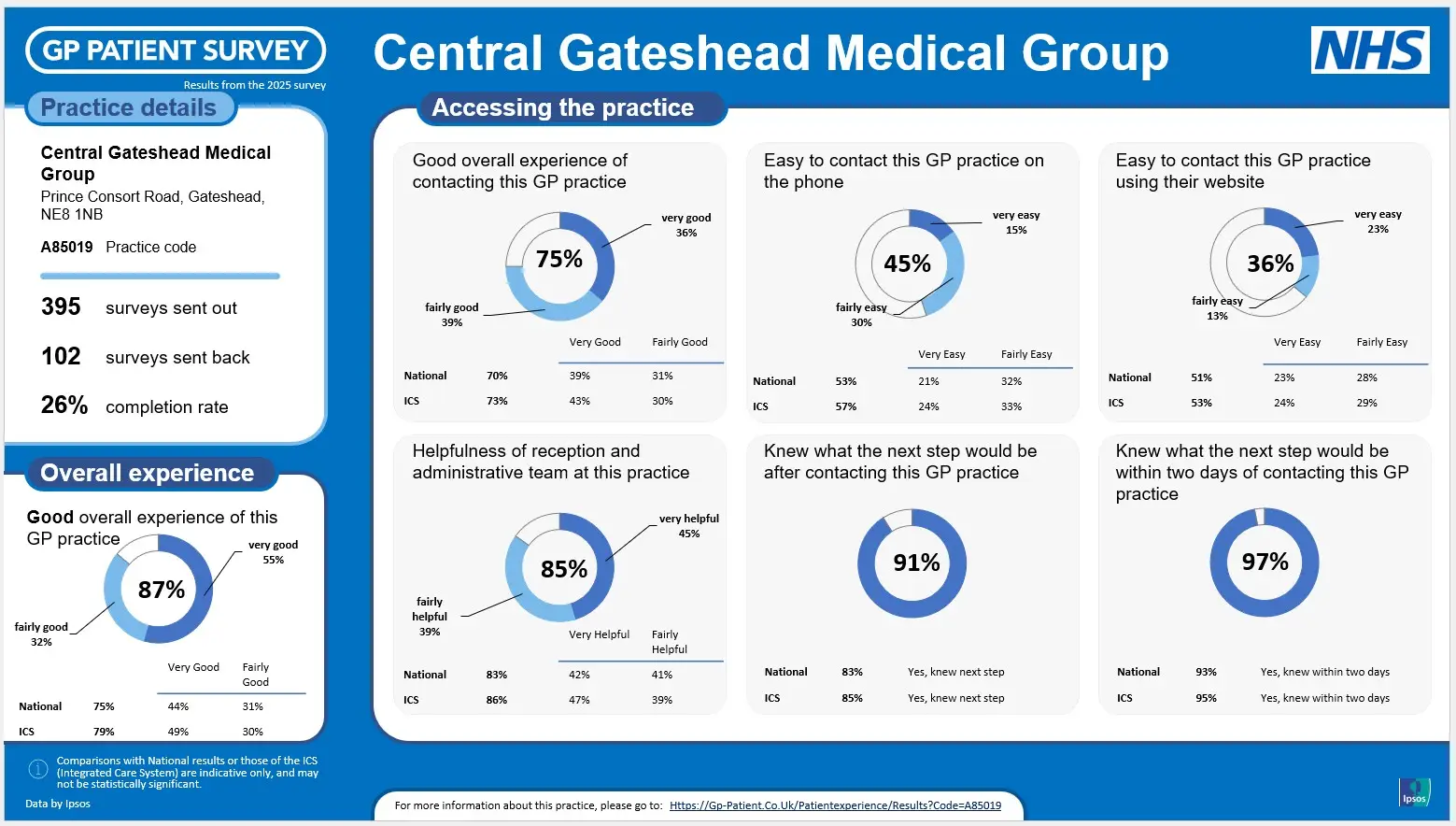 The annual GP Patient Survey Results have been published, and we are pleased to share our results! Thank you to everyone who took the time to respond.